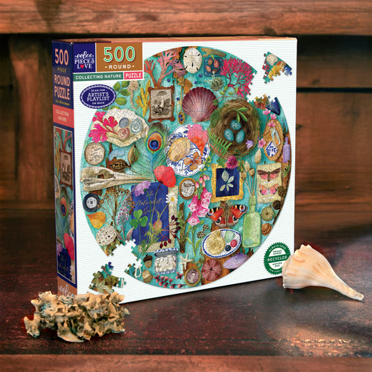 Mushrooms and Butterflies 500 Piece Round Puzzle