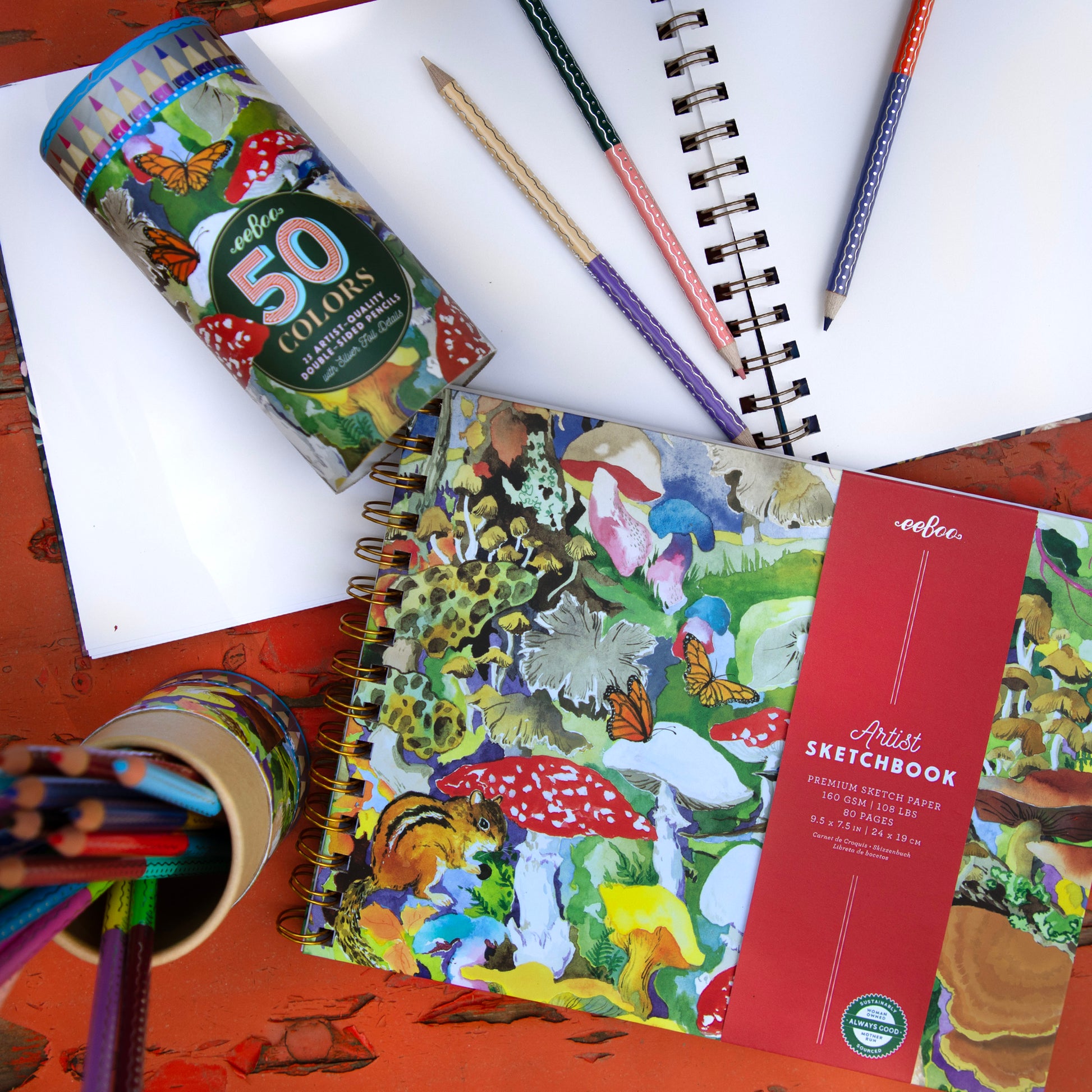 Mushroom Artist Sketchbook & Color Pencils