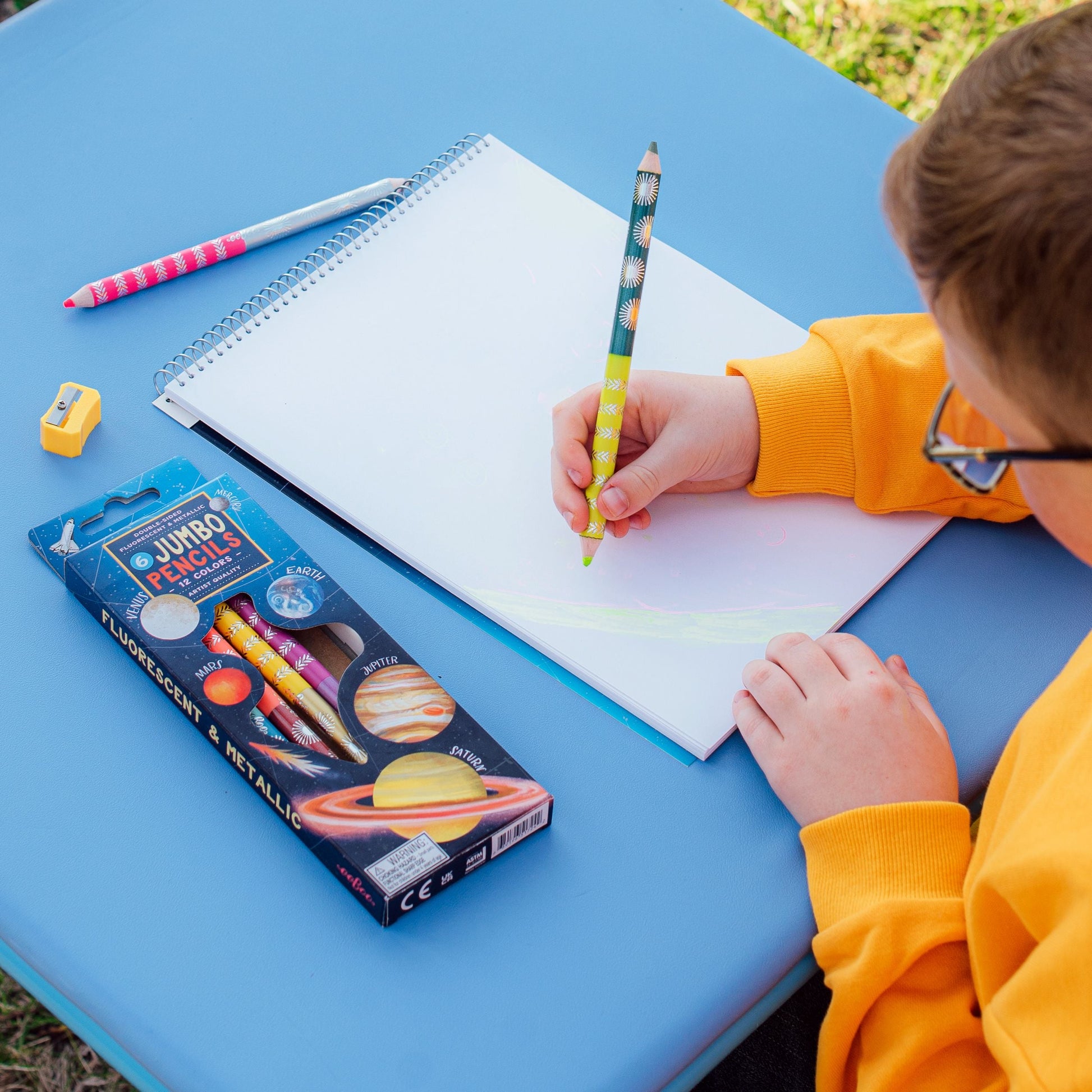 Explore our solar system with this delightful sketchbook illustrated by Uta Krogmann. Aglow with all our planetary neighbors, including the distant dwarf planet Pluto, this spiral-bound pad will make a lovely addition to any young artist's supplies. Perfect for sketching sessions on-the-go or for art projects around the house. Pairs with the matching Our Planets 6 Double-Sided Metallic & Fluorescent Pencils.