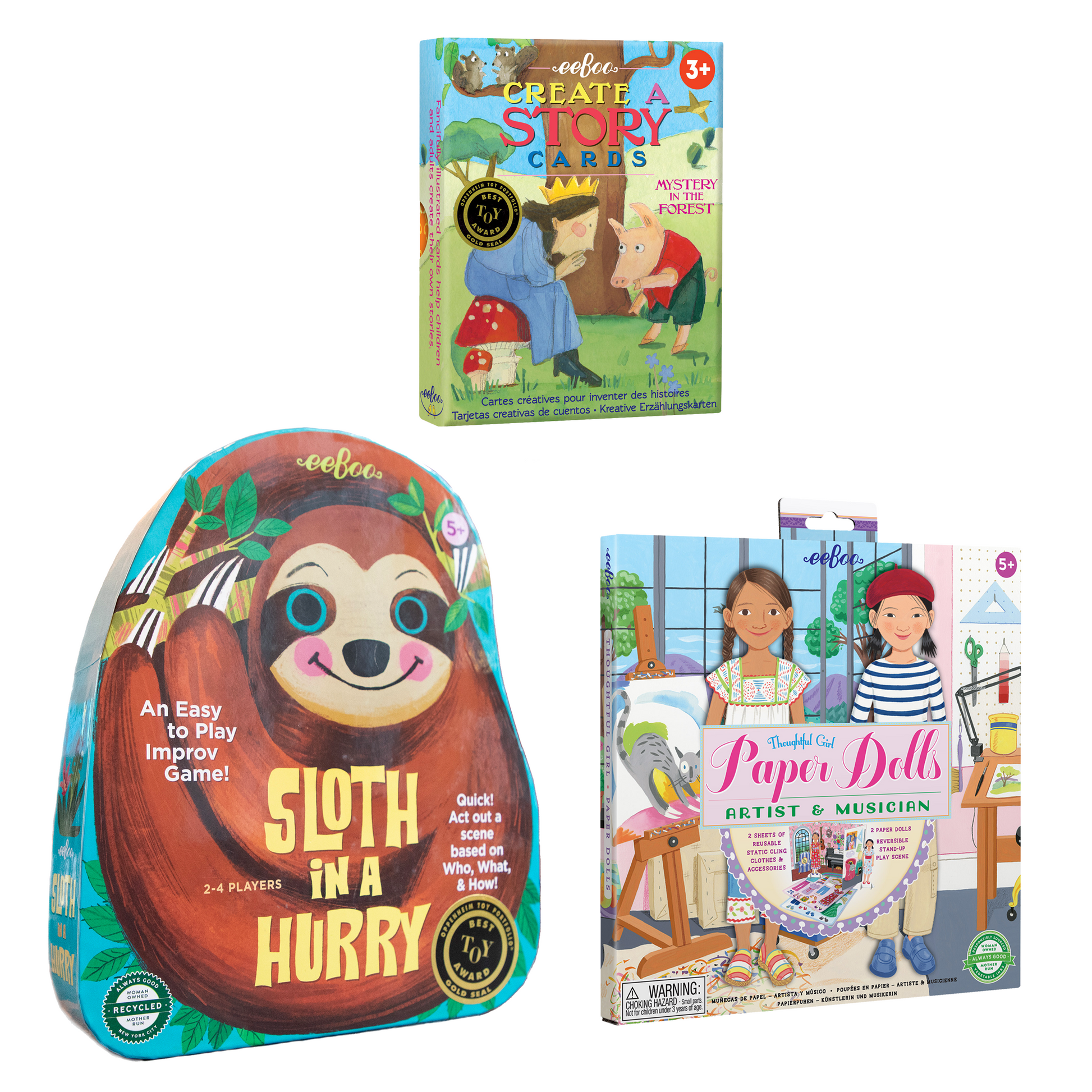 For 30 years, eeBoo has been committed to responsible manufacturing. We use recycled board, vegetable-based inks, and FSC®-certified paper. We always aim to minimize unnecessary packaging and participate in carbon offset to limit our environmental impact.